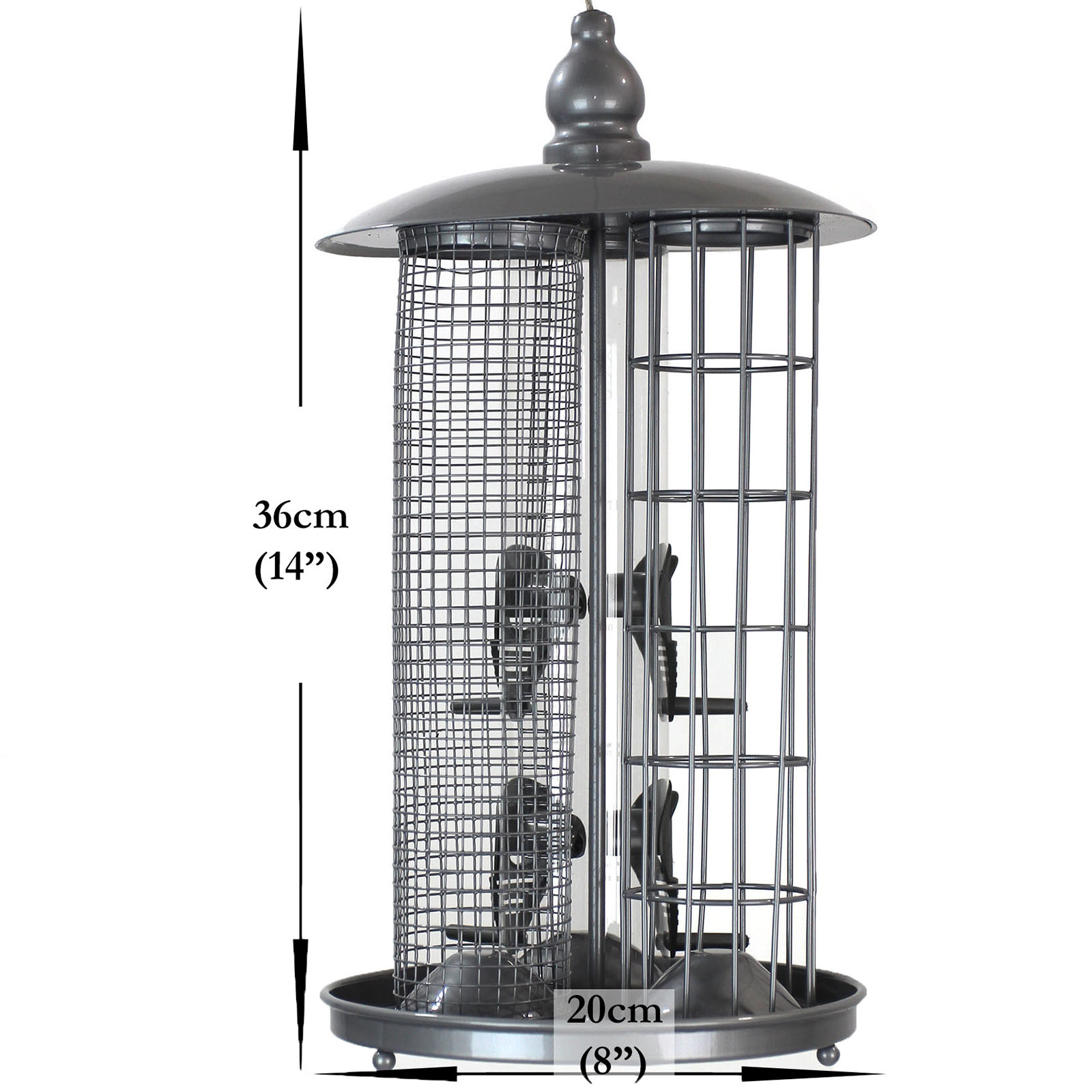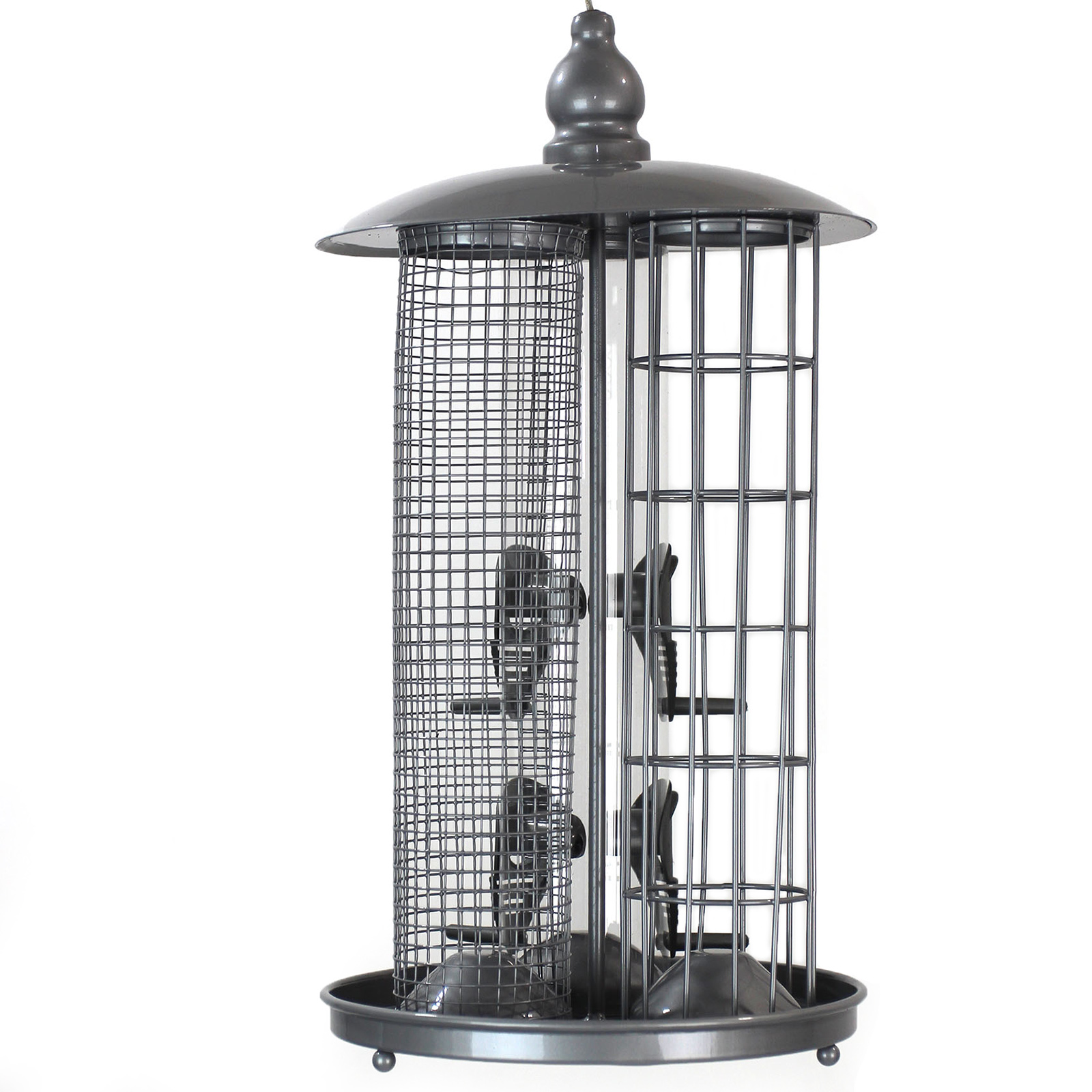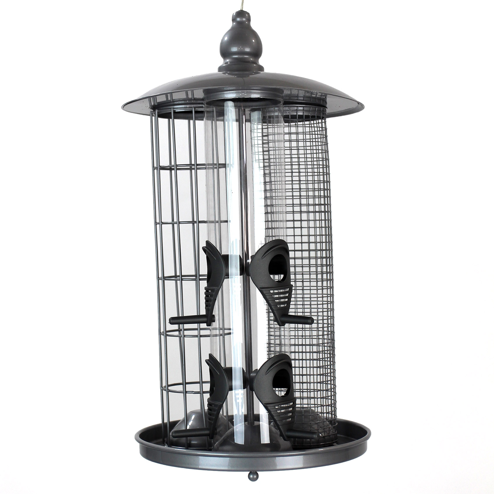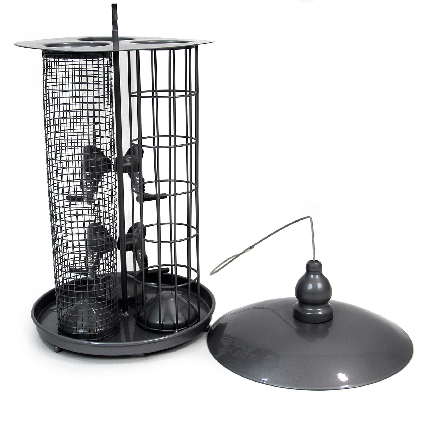Our 3-in-1 bird feeder is a great way to attract a wide variety of birds, but only needs one hook or branch to hang from!