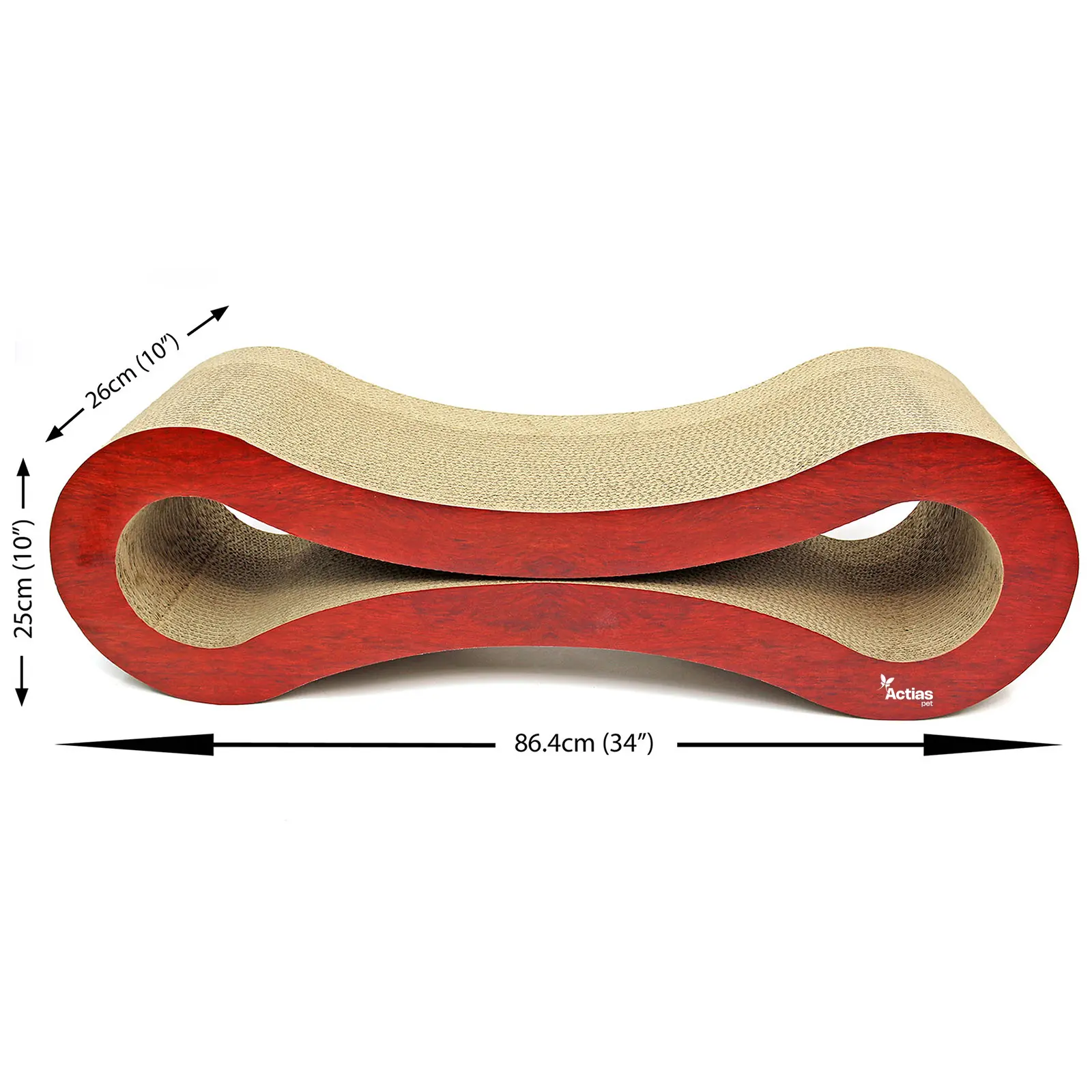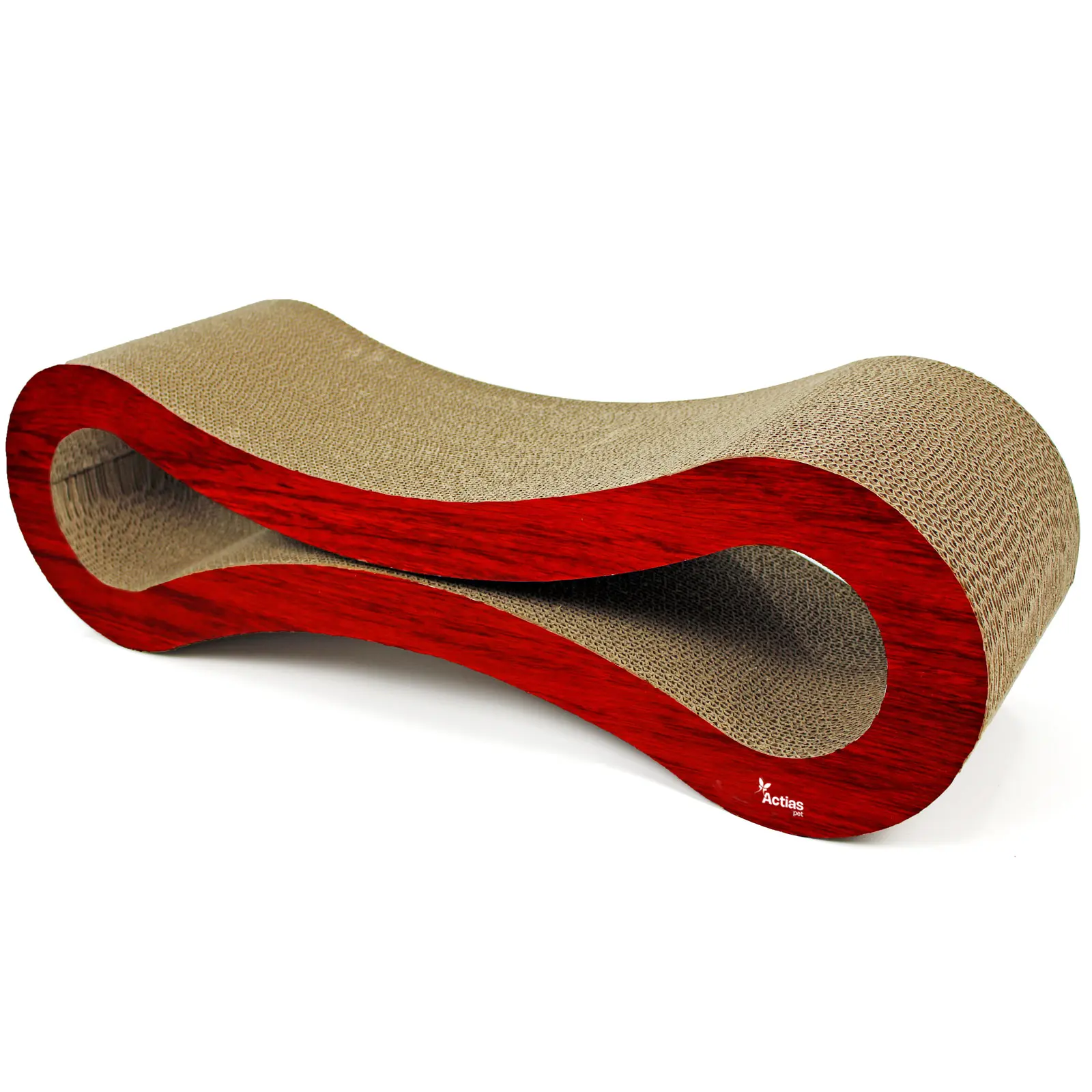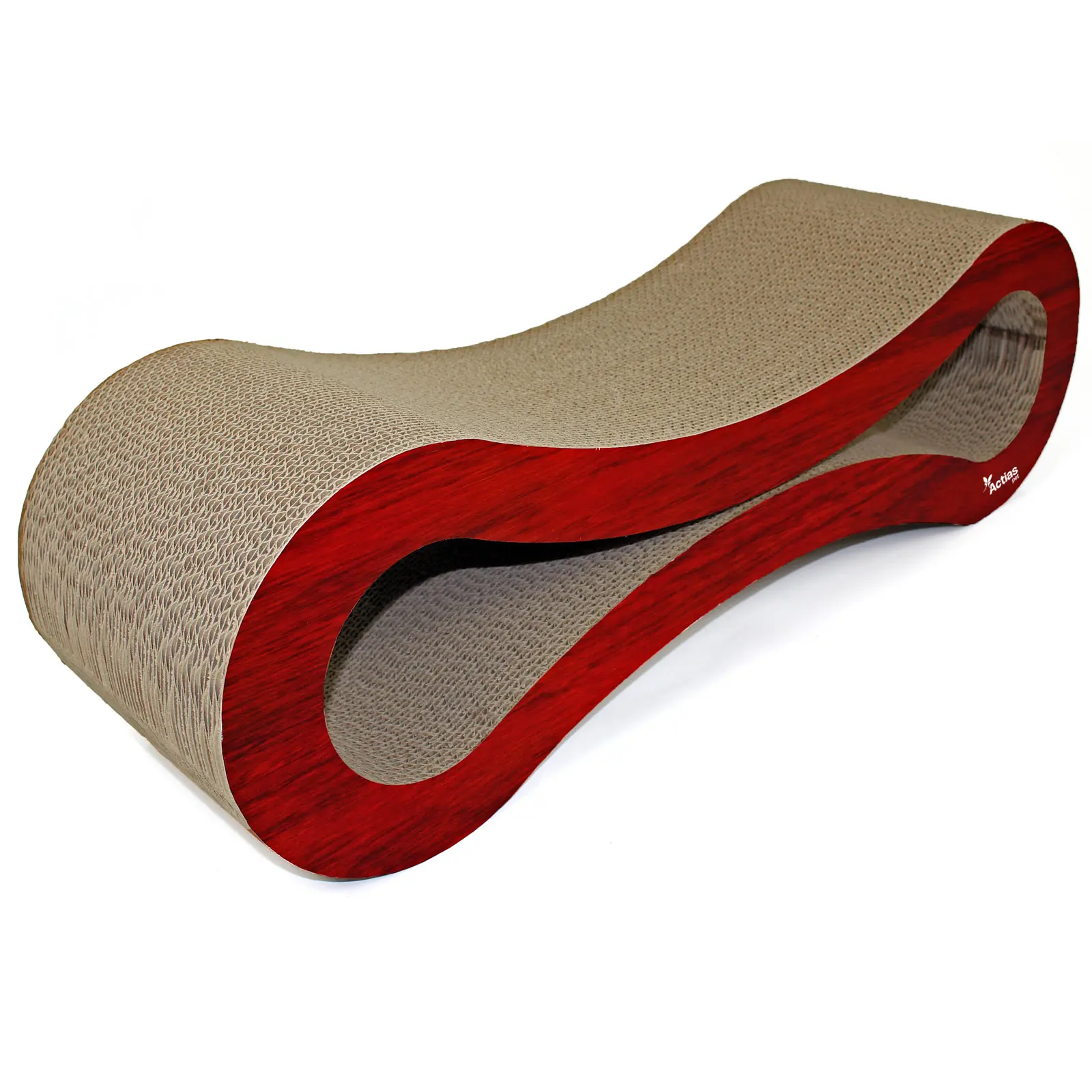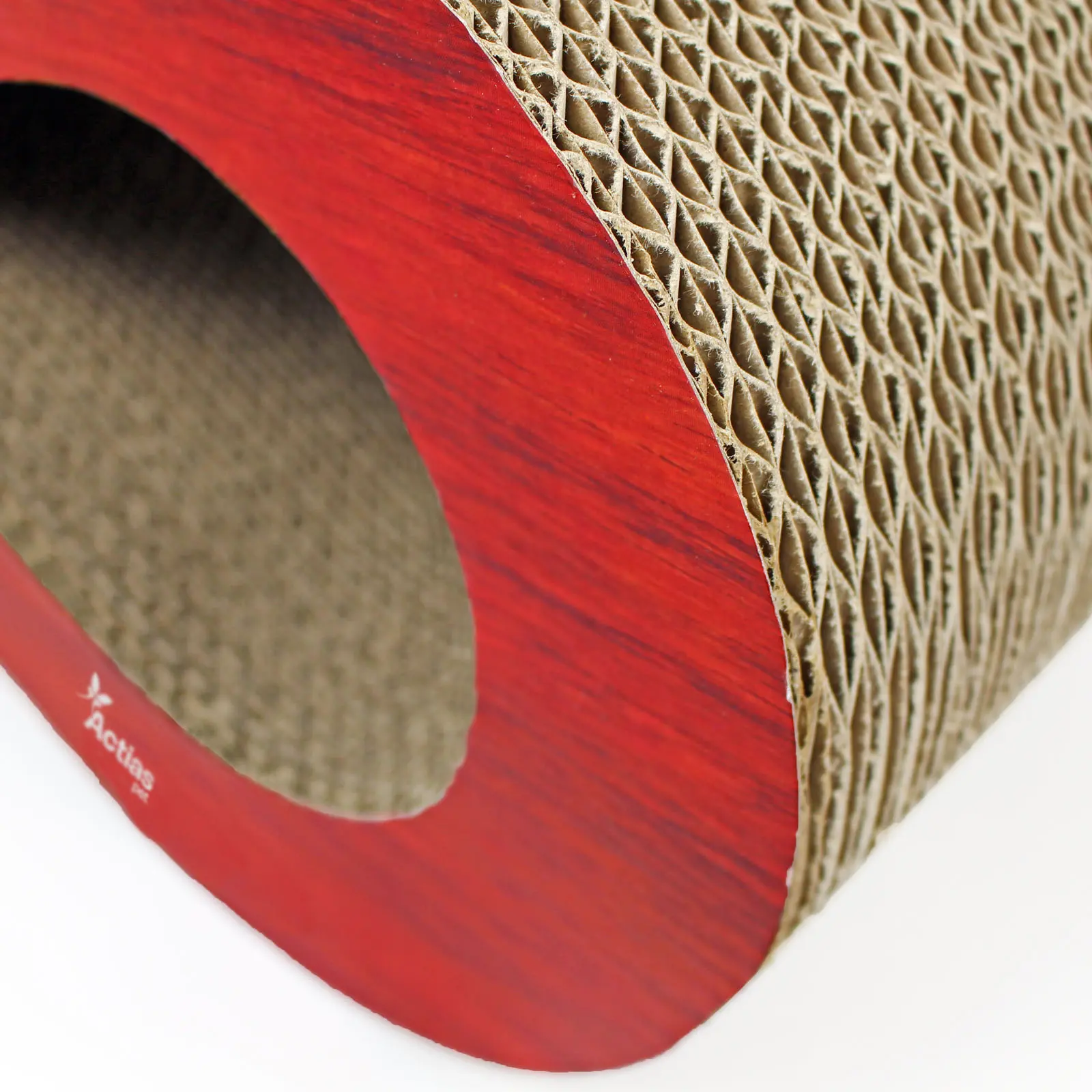 Our large size cat scratcher is made from corrugated cardboard and features a wood finish. It's generous proportions provide your cat with a great lounging spot when resting.