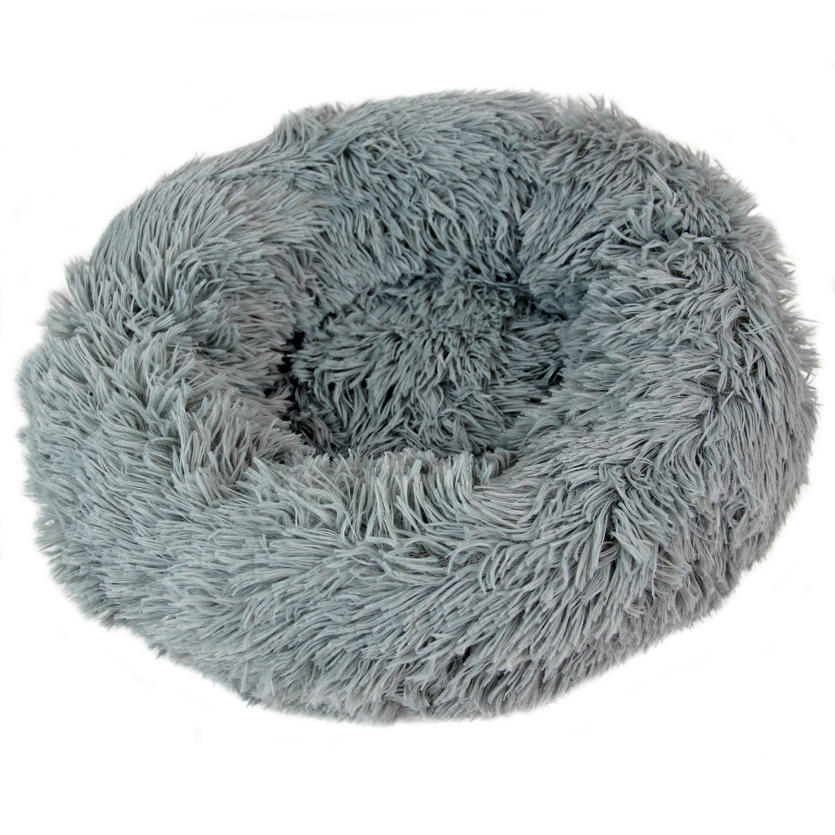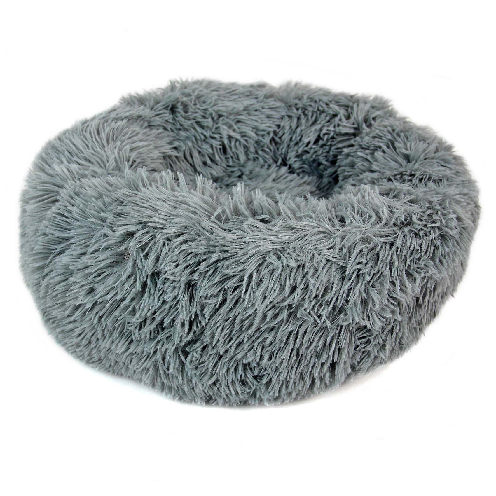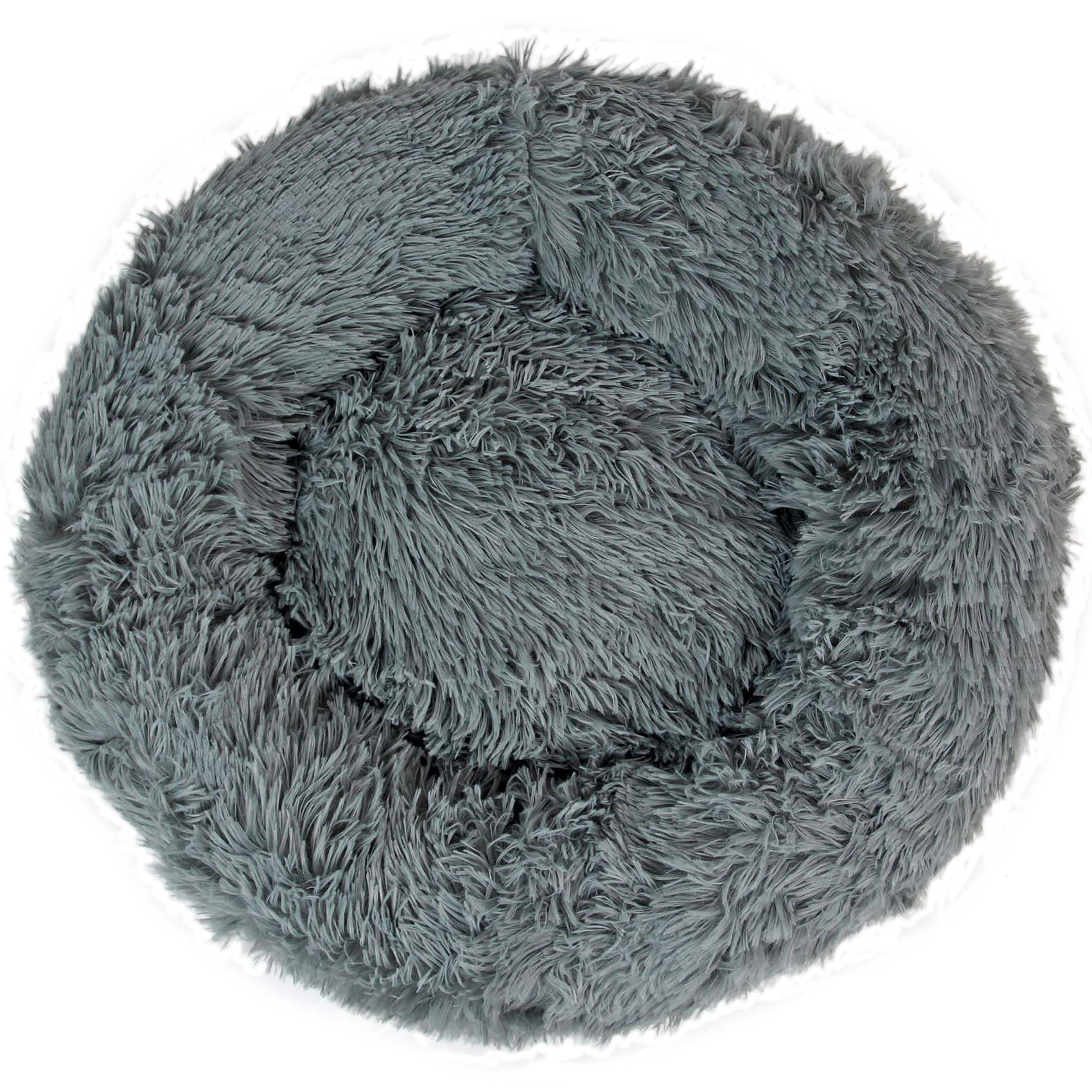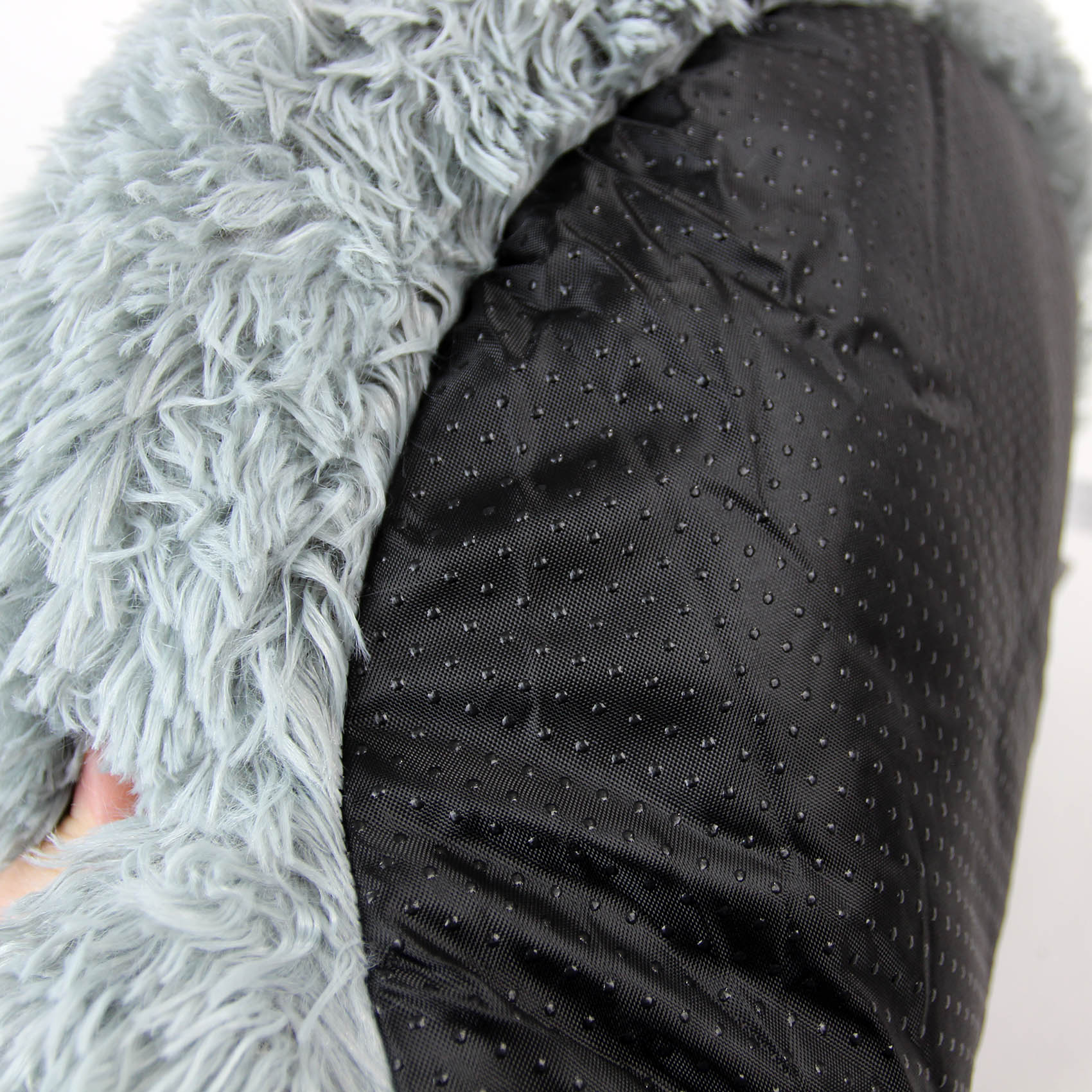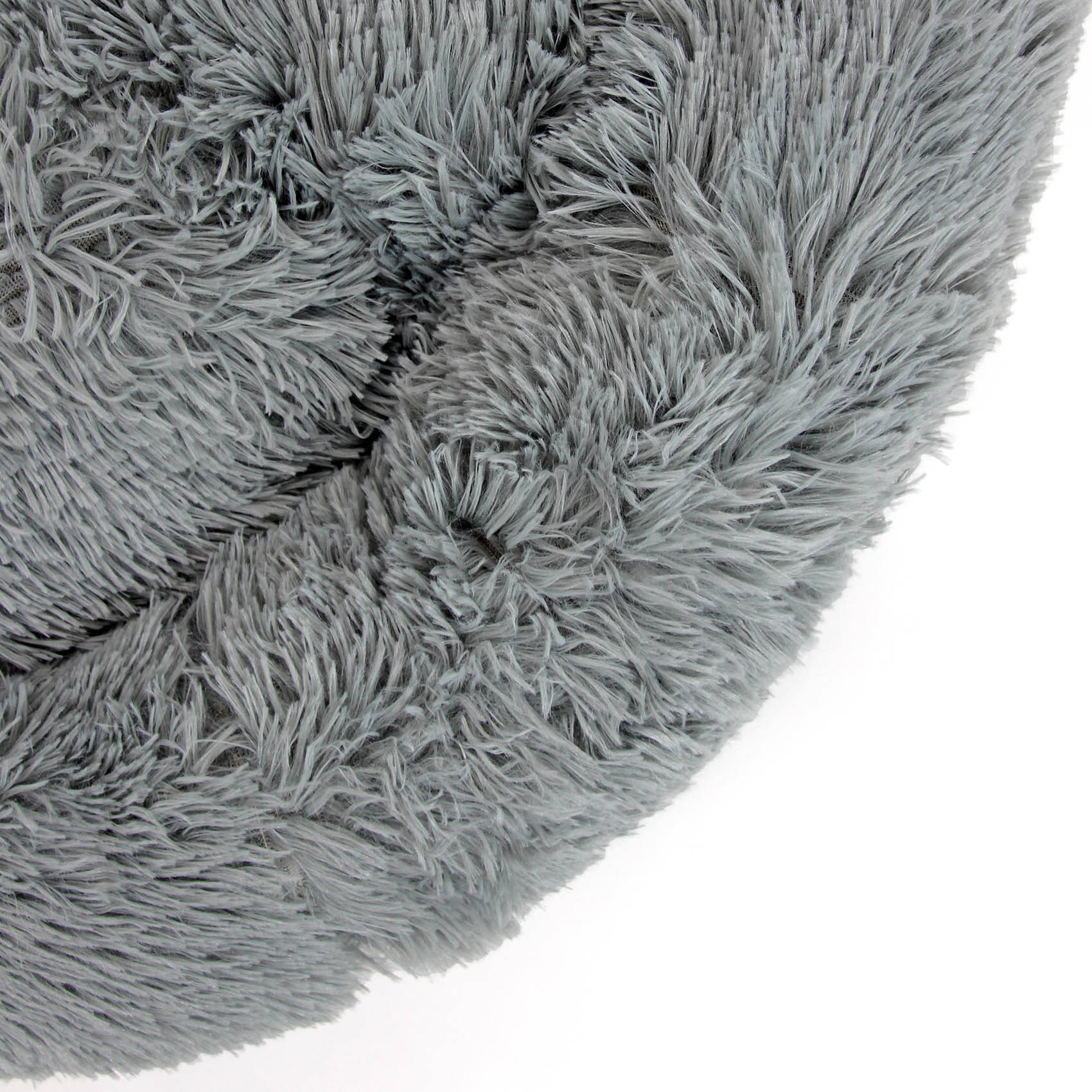 Our fluffy pet bed in a dark grey finish. It has an outer cover made from long hair fleece with a comfortable soft polyfiber filling. This fluffy pet bed is the perfect napping spot for your furry friends!