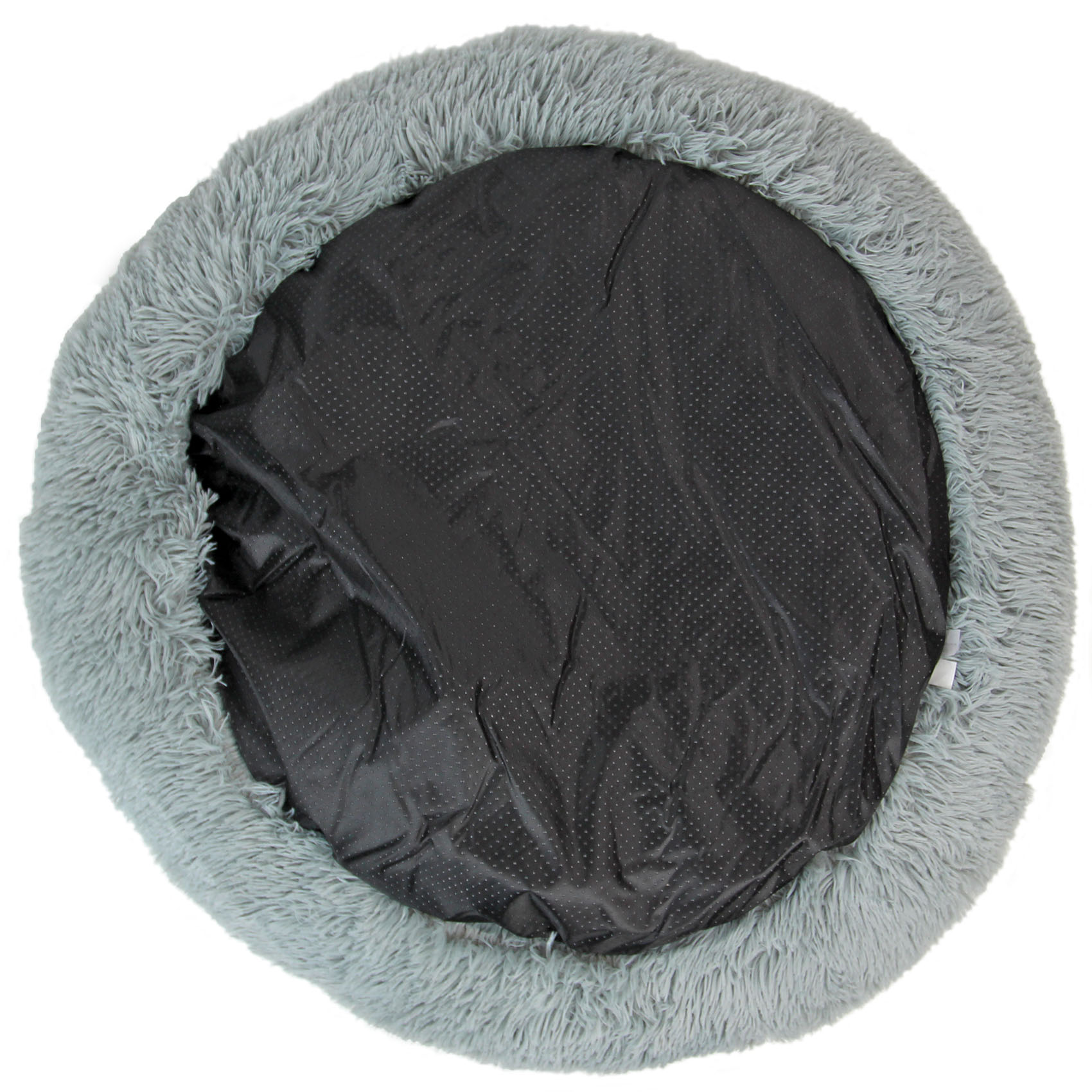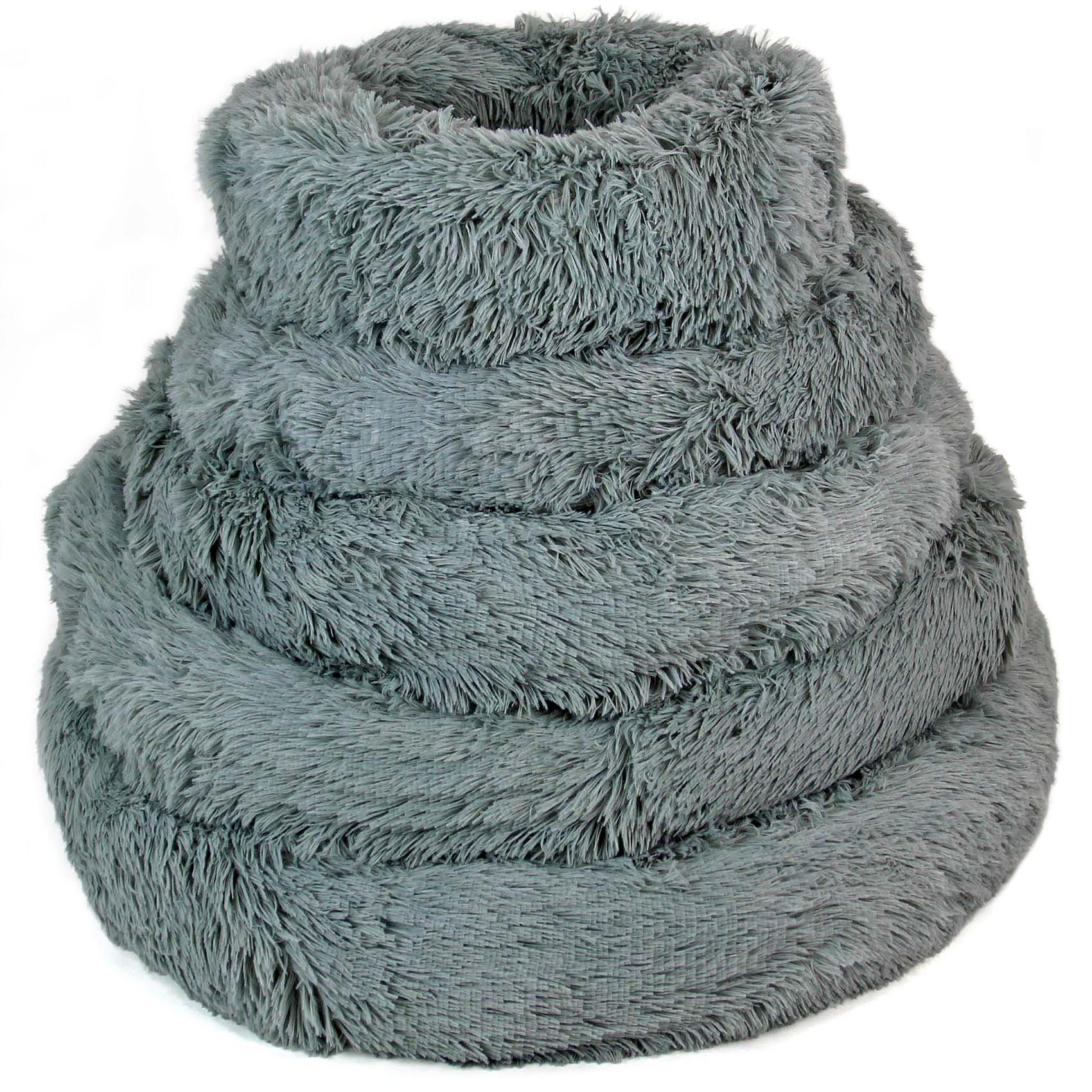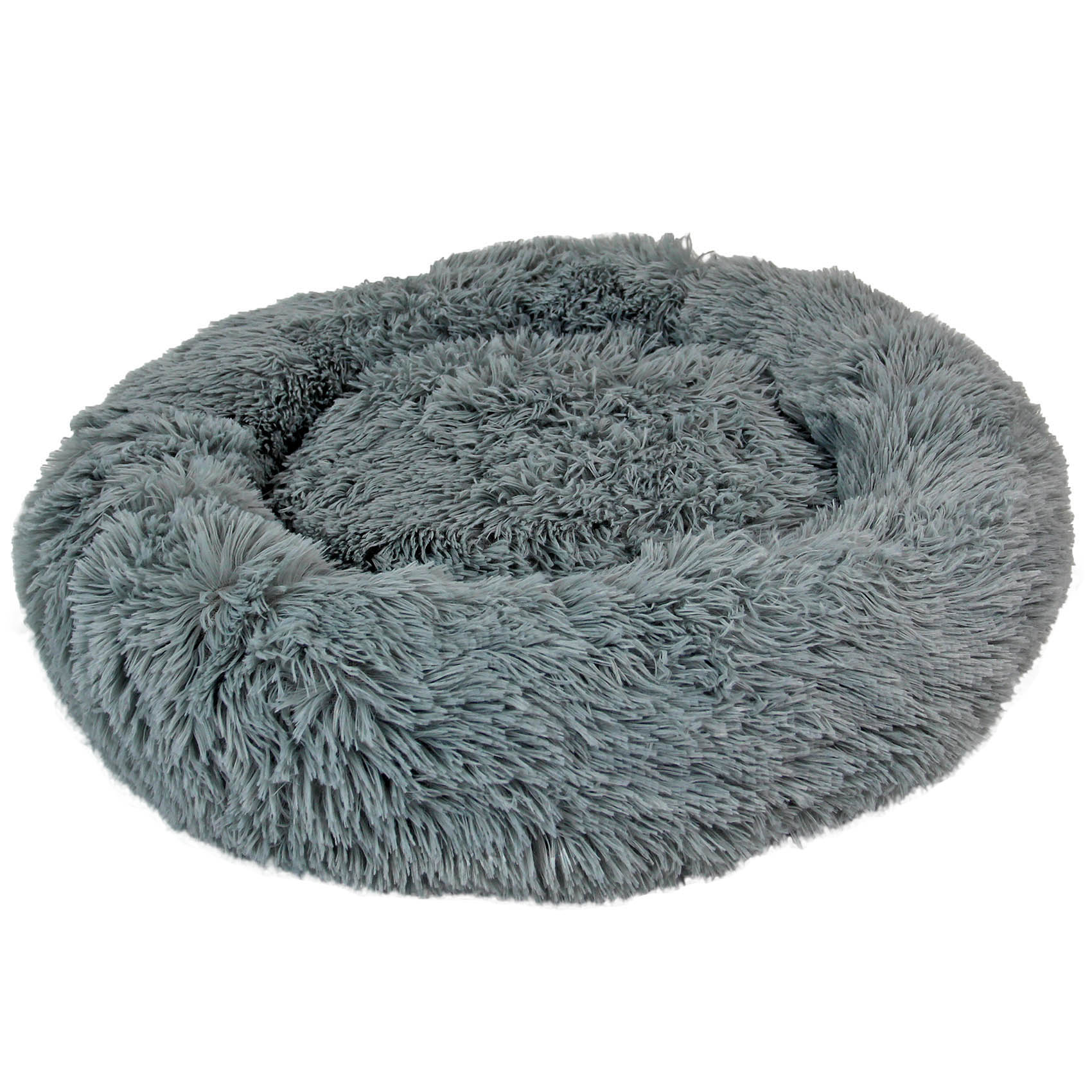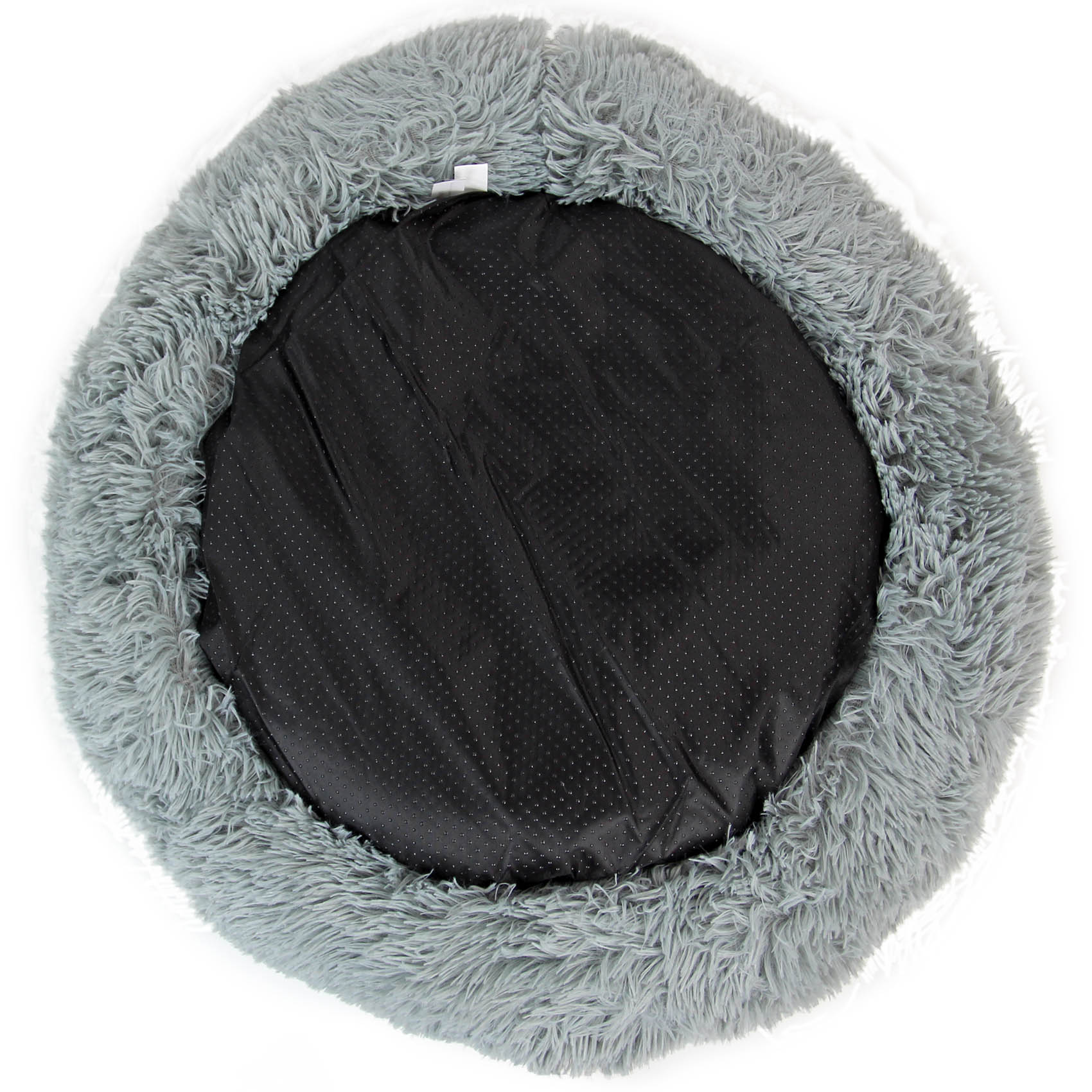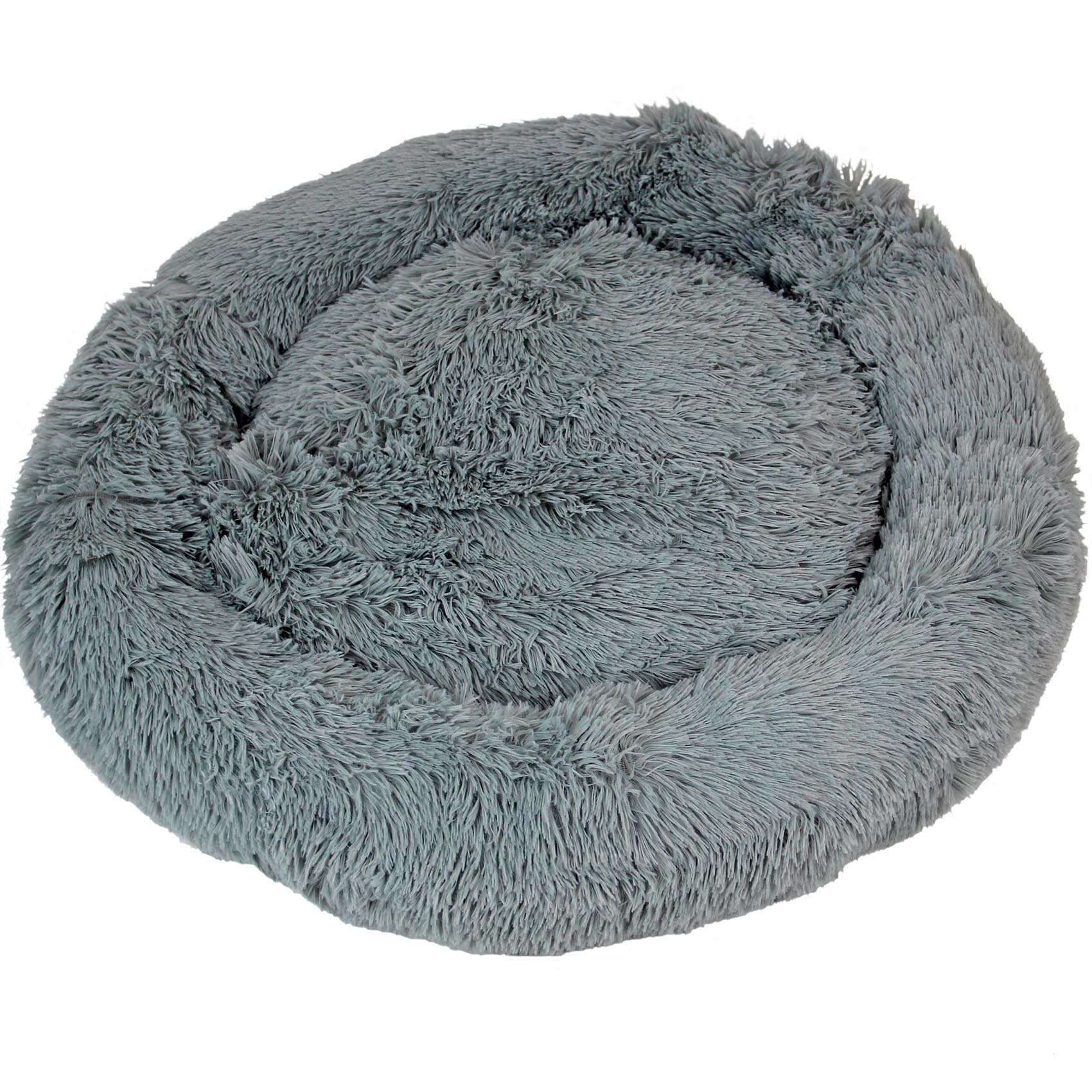 Our fluffy pet bed in a dark grey finish. It has an outer cover made from long hair fleece with a comfortable soft polyfiber filling. This fluffy pet bed is the perfect napping spot for your furry friends!