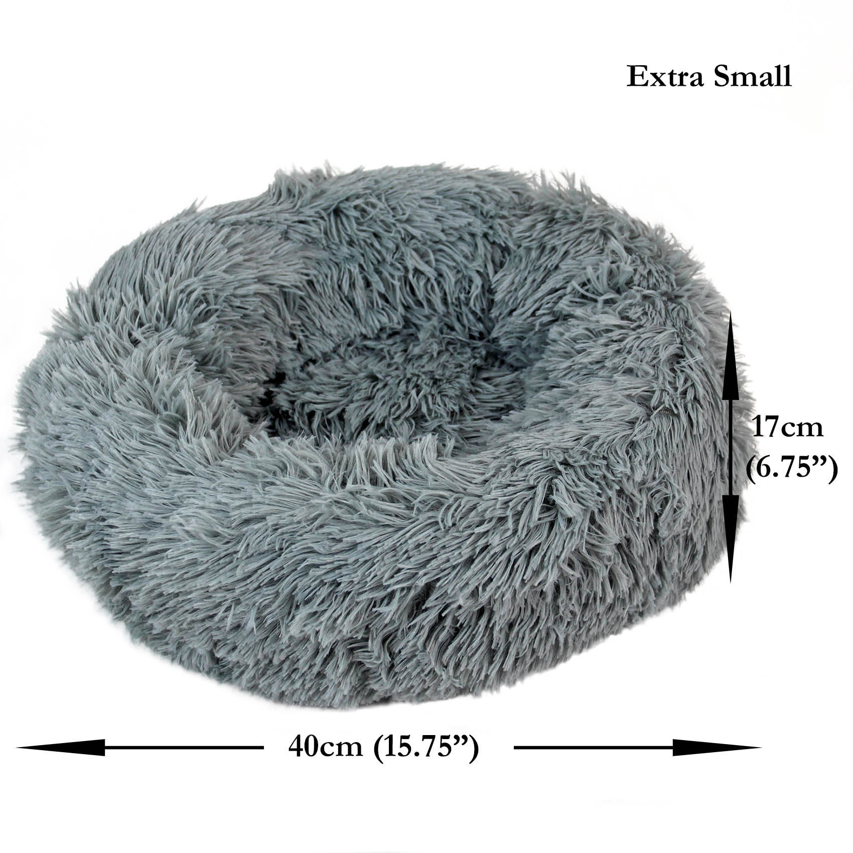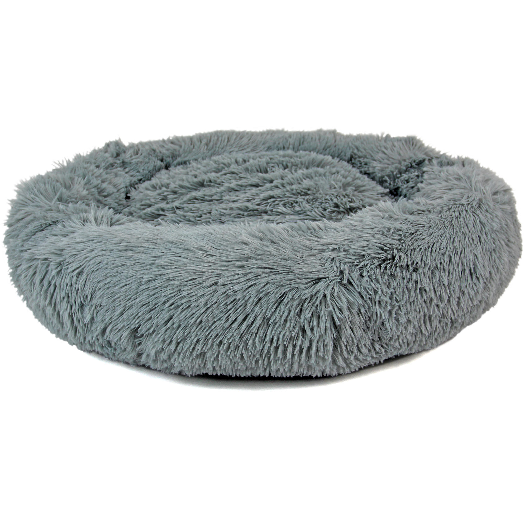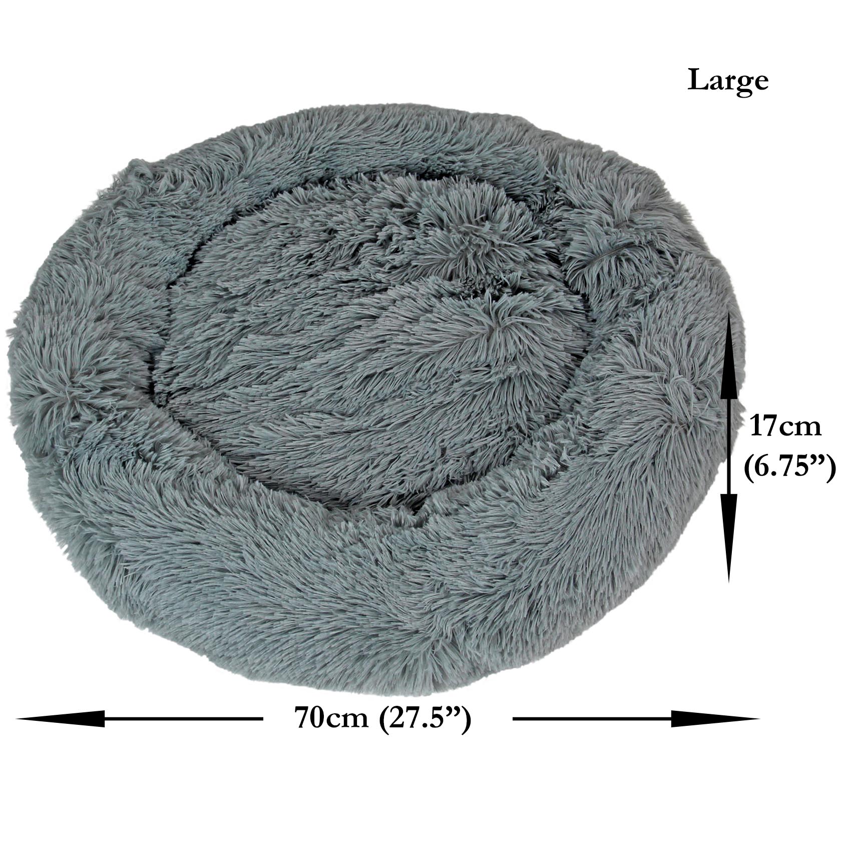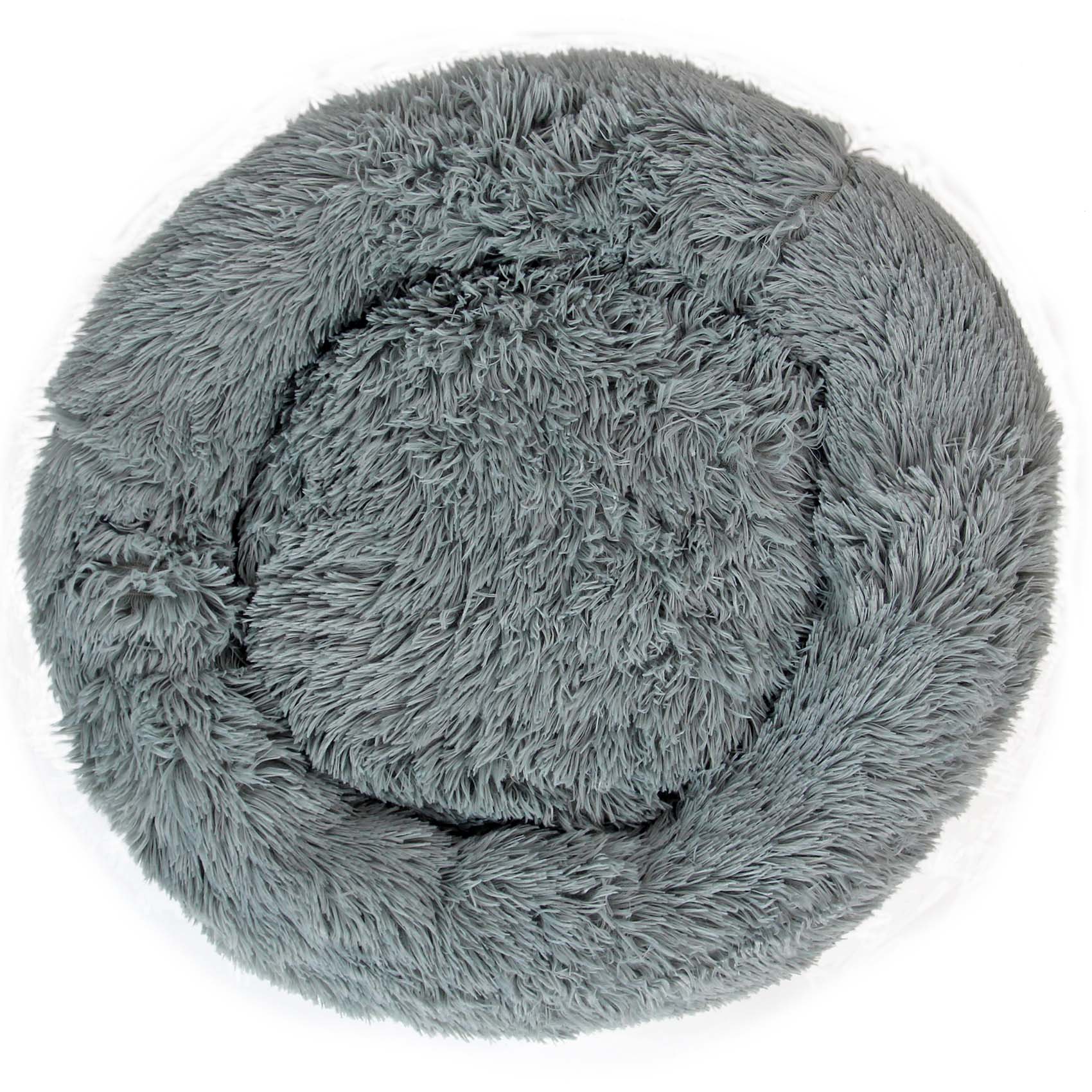 Our fluffy pet bed in a dark grey finish. It has an outer cover made from long hair fleece with a comfortable soft polyfiber filling. This fluffy pet bed is the perfect napping spot for your furry friends!
