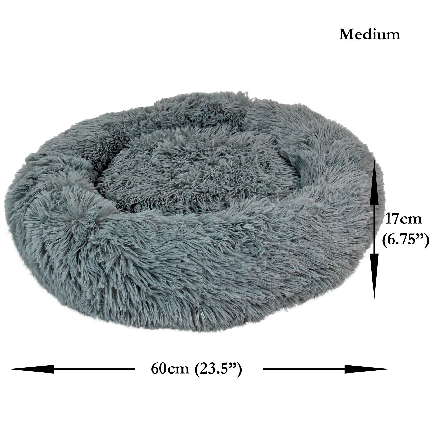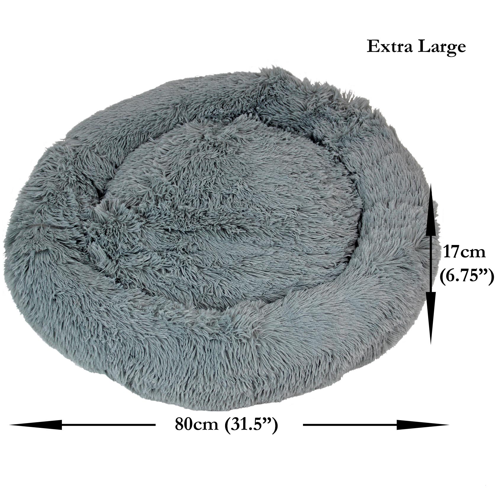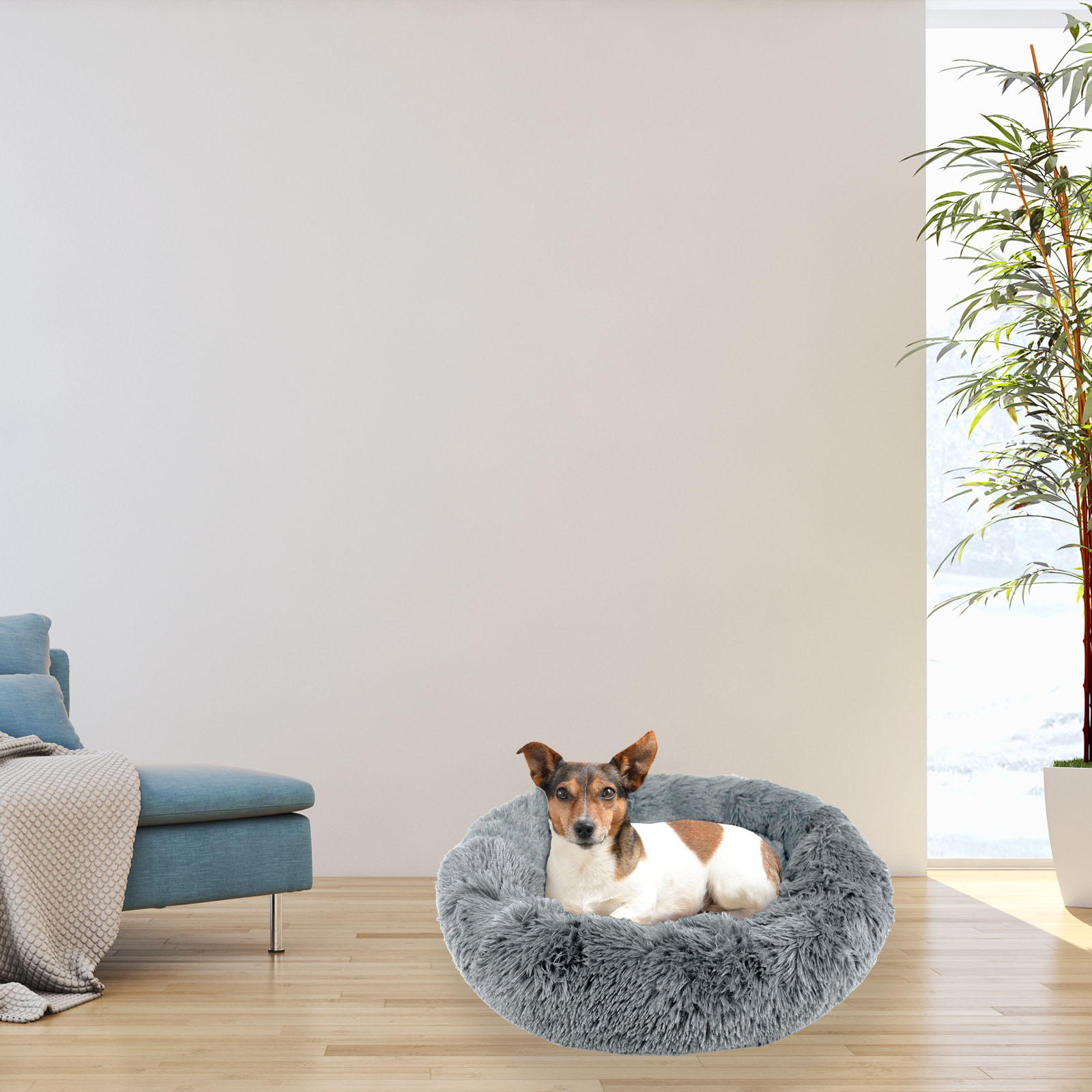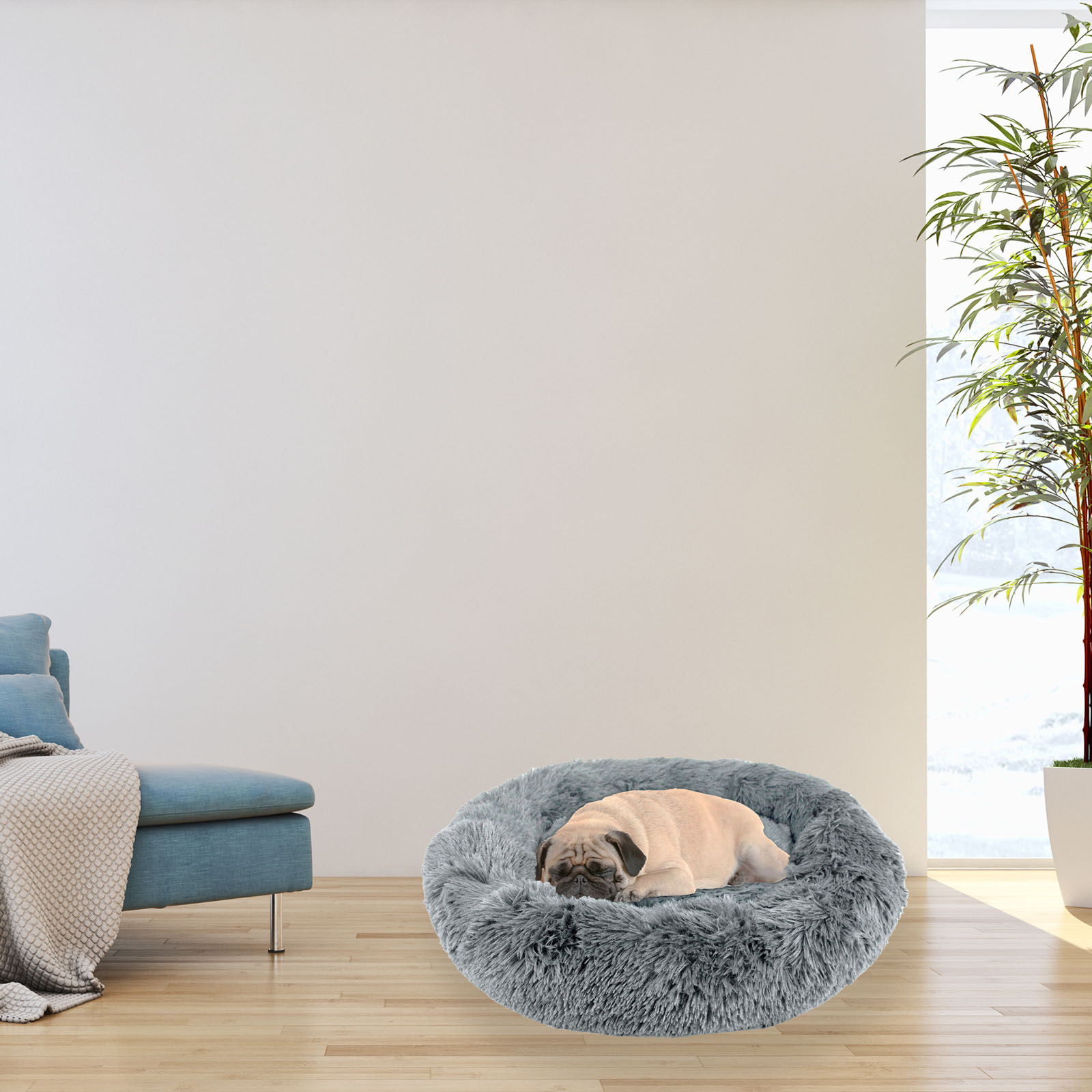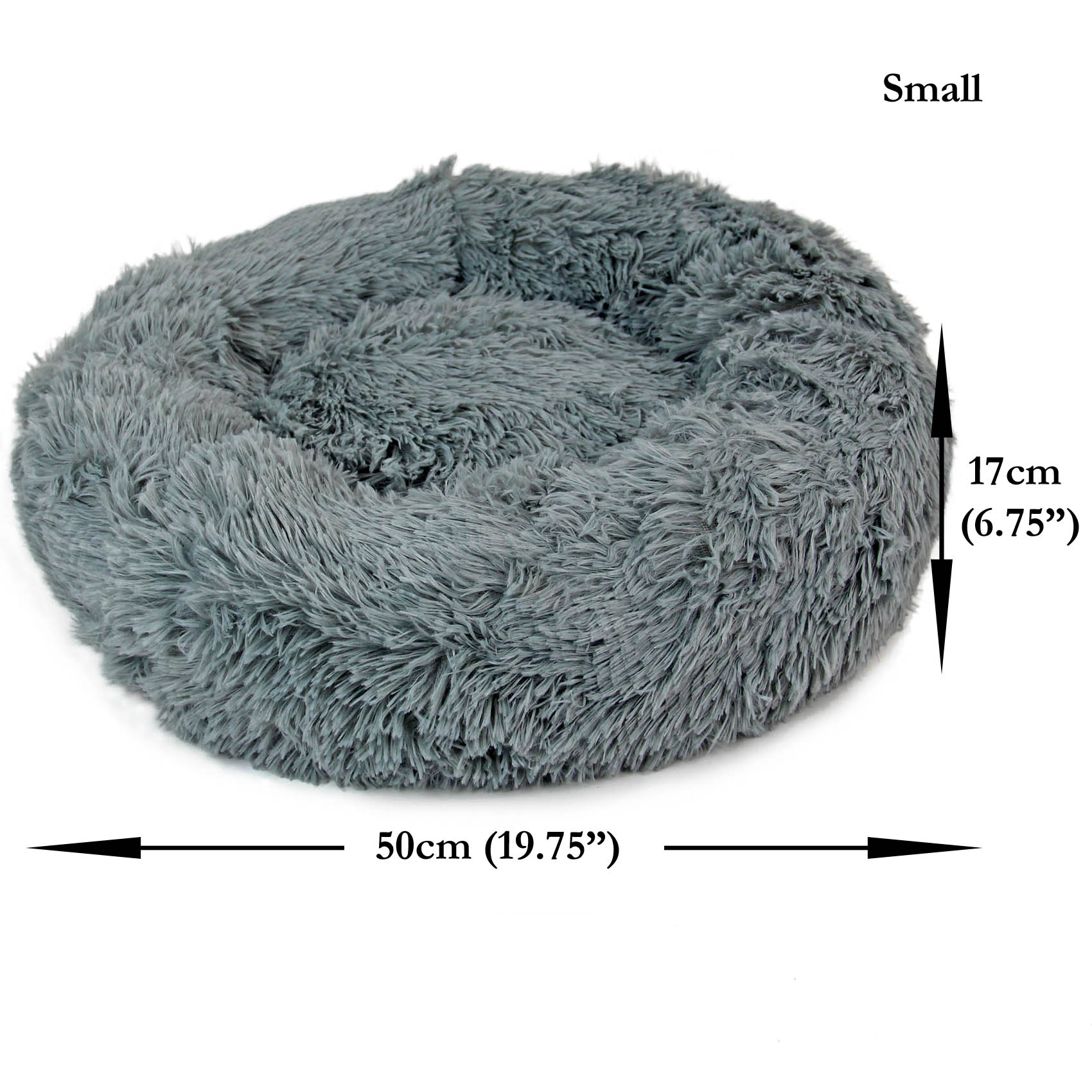 Our fluffy pet bed in a dark grey finish. It has an outer cover made from long hair fleece with a comfortable soft polyfiber filling. This fluffy pet bed is the perfect napping spot for your furry friends!