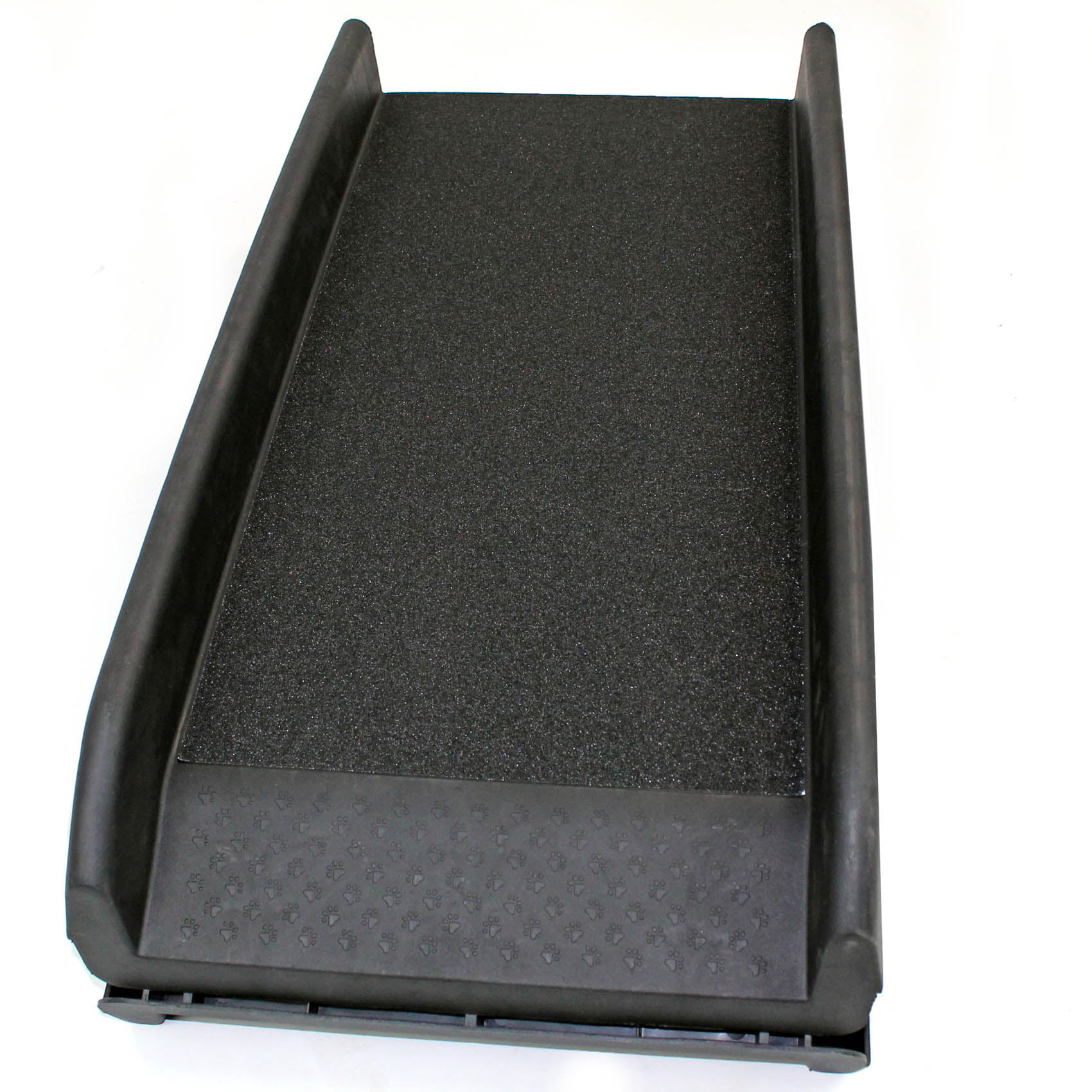 This folding pet ramp is made from strong and durable plastic, making it a lightweight solution for pet access when on the move. The ramp can also be folded in two for easy storage in your vehicle or at home. Our folding pet ramp features a textured surface providing extra grip and raised edges to help prevent sideways movement.