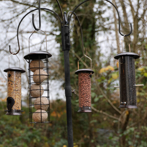 Complete Feeding Set – Includes 4 individual feeders, each designed for a different food type: Seed, Nut, Fat Ball, and Nyjer.